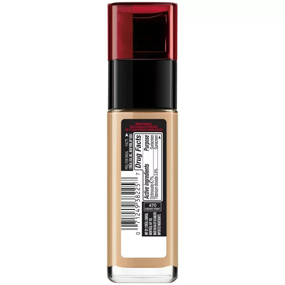Presentamos nuestra innovadora base de maquillaje líquido de larga duración. Up to 24HR Fresh Wear Foundation brinda una cobertura total que dura todo el día y permite que la piel respire. Los tres absorbentes de aceite de la fórmula resisten el sudor y la transferencia. El líquido ultrafino se aplica suavemente para brindar un cutis fresco, de aspecto saludable y duradero. El color se mantiene fiel y se difumina uniformemente, para que tu maquillaje luzca fresco todo el día. No comedogénica y formulada con SPF, esta base es adecuada para todo tipo de piel.