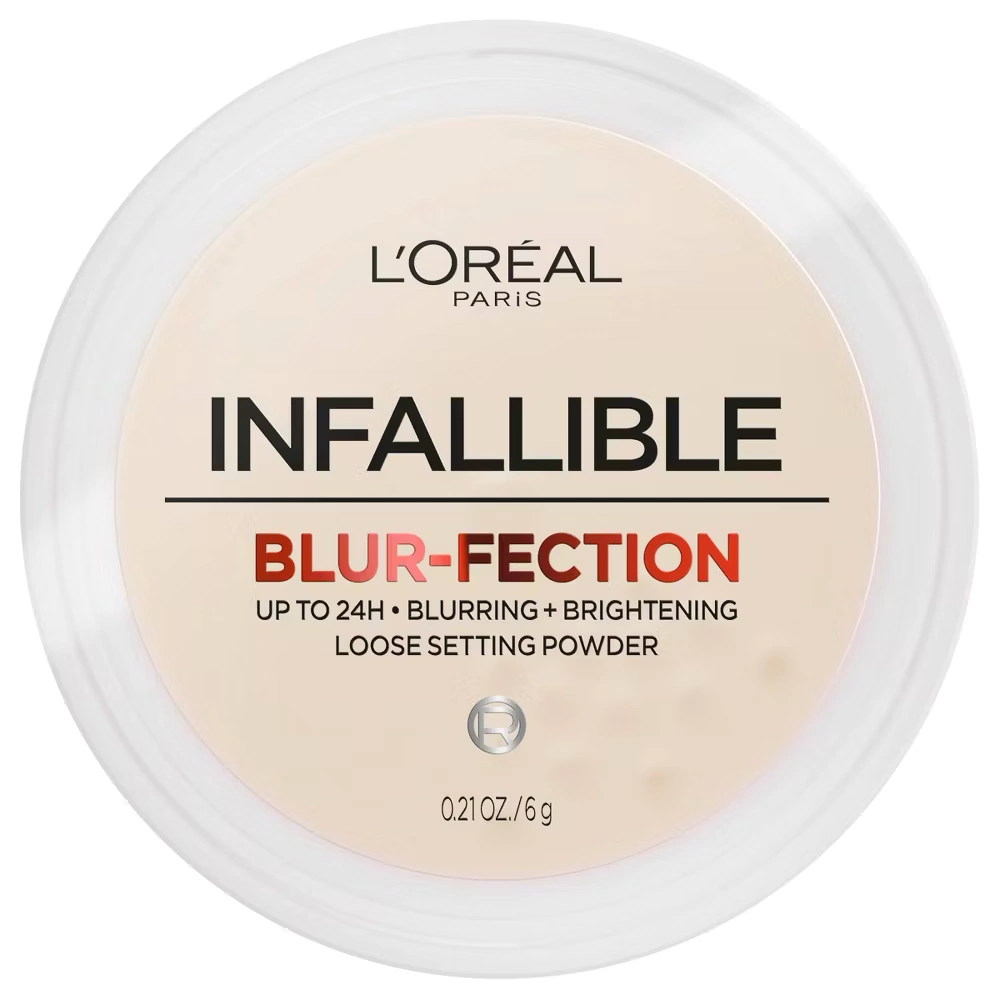 Infalible Hasta 24H Blur-fection Longwear Loose Setting Powder: Los polvos ligeros y aireados dan un hermoso efecto de desenfoque mientras se iluminan. El polvo ultrafino y aterciopelado absorbe el brillo, evita los flashbacks y fija el maquillaje hasta por 24 horas. Úselo para difuminar la apariencia de líneas finas y poros, resaltar el contorno facial o hornear debajo del ojo para iluminarlo. Aplique el polvo Blurfection en todas las áreas que le gustaría difuminar, matificar o iluminar, incluida la zona T, los lados de la nariz, la barbilla y debajo de los ojos. Después de presionar el polvo en el maquillaje, deje reposar durante unos minutos antes de quitar ligeramente el exceso de polvo. Disponible en cuatro tonos, adecuado para todo tipo de piel y piel sensible.