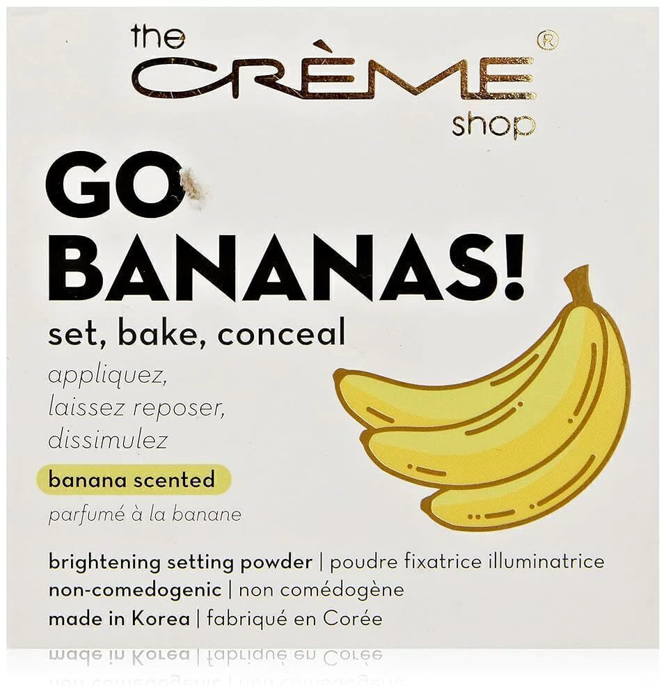 ¡Ilumina, difumina y establece tu maquillaje con The Crème Shop Go Bananas! Polvo de plátano: un polvo fijador ligero de tono amarillo que refresca instantáneamente la tez con un acabado mate suave. Esta fórmula finamente molida está diseñada para reducir la apariencia de ojeras, absorber el exceso de aceite y extender el desgaste de tu maquillaje sin apelmazarse ni arrugarse. Perfecto para hornear o colocar en toda la superficie, deja la piel con un aspecto suave, aerografía y naturalmente radiante. Infundido con ingredientes nutritivos como aceite de semilla de uva, aceite de coco, aceite de argán y extracto de flor de camelia, este polvo no solo perfecciona tu aspecto, sino que también ayuda a acondicionar y suavizar la piel. El cálido tono plátano ilumina las áreas opacas o irregulares, especialmente debajo de los ojos, y funciona maravillosamente en una amplia gama de tonos de piel. Con su sutil aroma a plátano y textura sedosa, ¡Go Bananas! Banana Powder ofrece un acabado impecable mientras añade un toque divertido a tu rutina. Vegano, libre de crueldad animal y probado por dermatólogos, es tu nuevo maquillaje que se ve fresco todo el día.