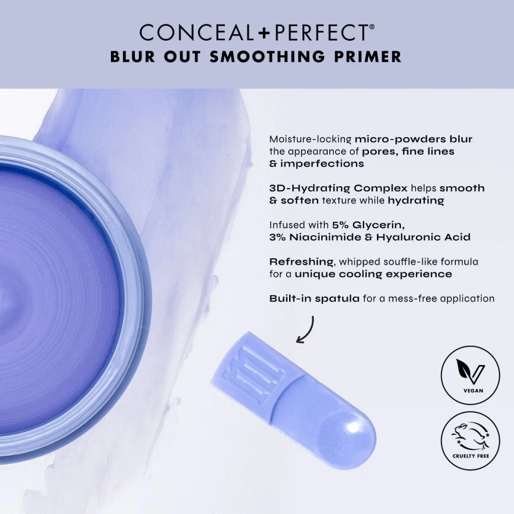 ¿Hidratación de alto nivel y poros difuminados? No es magia, ¡es maquillaje! Milani Conceal + Perfect Blur Out Smoothing Primer difumina e hidrata al instante mientras proporciona una refrescante sensación de frescor. Su fórmula contiene micro-polvos hidratantes que se sienten como un suflé batido sobre la piel y crean un efecto de enfoque suave que difumina y difumina la apariencia de líneas finas, poros e imperfecciones. También contiene un Complejo Hidratante 3D diseñado para ayudar a alisar y suavizar la textura apagada y optimizar los niveles naturales de hidratación de la piel. Un 5% de glicerina, un 3% de niacinamida y ácido hialurónico nutren e hidratan, mientras que las algas azules, el extracto de pera coreana, el árnica y la manzanilla azul, ricos en nutrientes, aportan beneficios antioxidantes. Esta potente combinación de ingredientes que cuidan la piel convierte a Blur Out Smoothing Primer en la base hidratante y difuminadora definitiva.